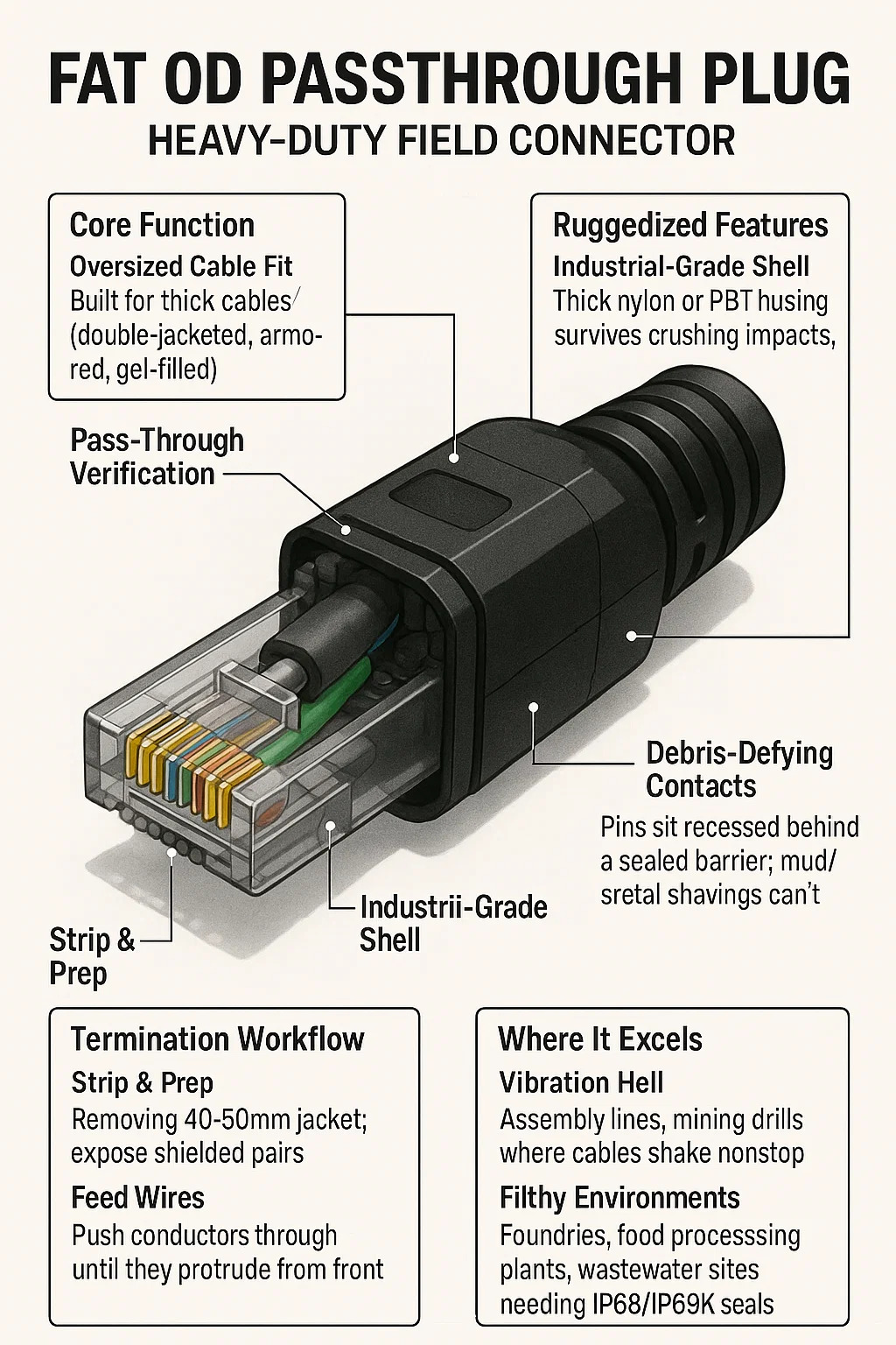 ปลั๊ก Passthrough OD ไขมัน : ขั้วต่อสนามสำหรับงานหนัก